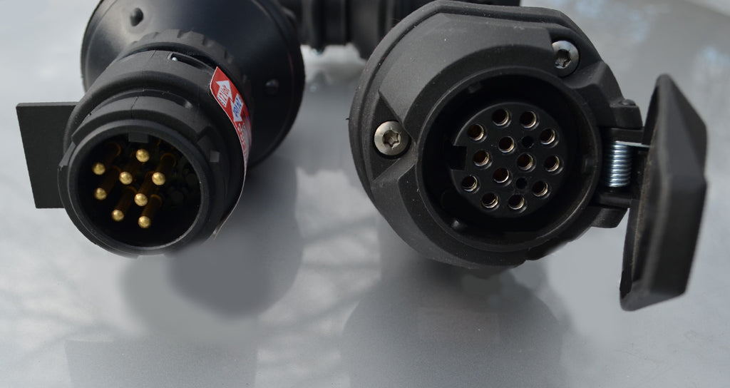 Hier passt dann der 13 pol Stecker vom normalen Pkw - Anhänger mit 12 Volt Bordnetzspannung.